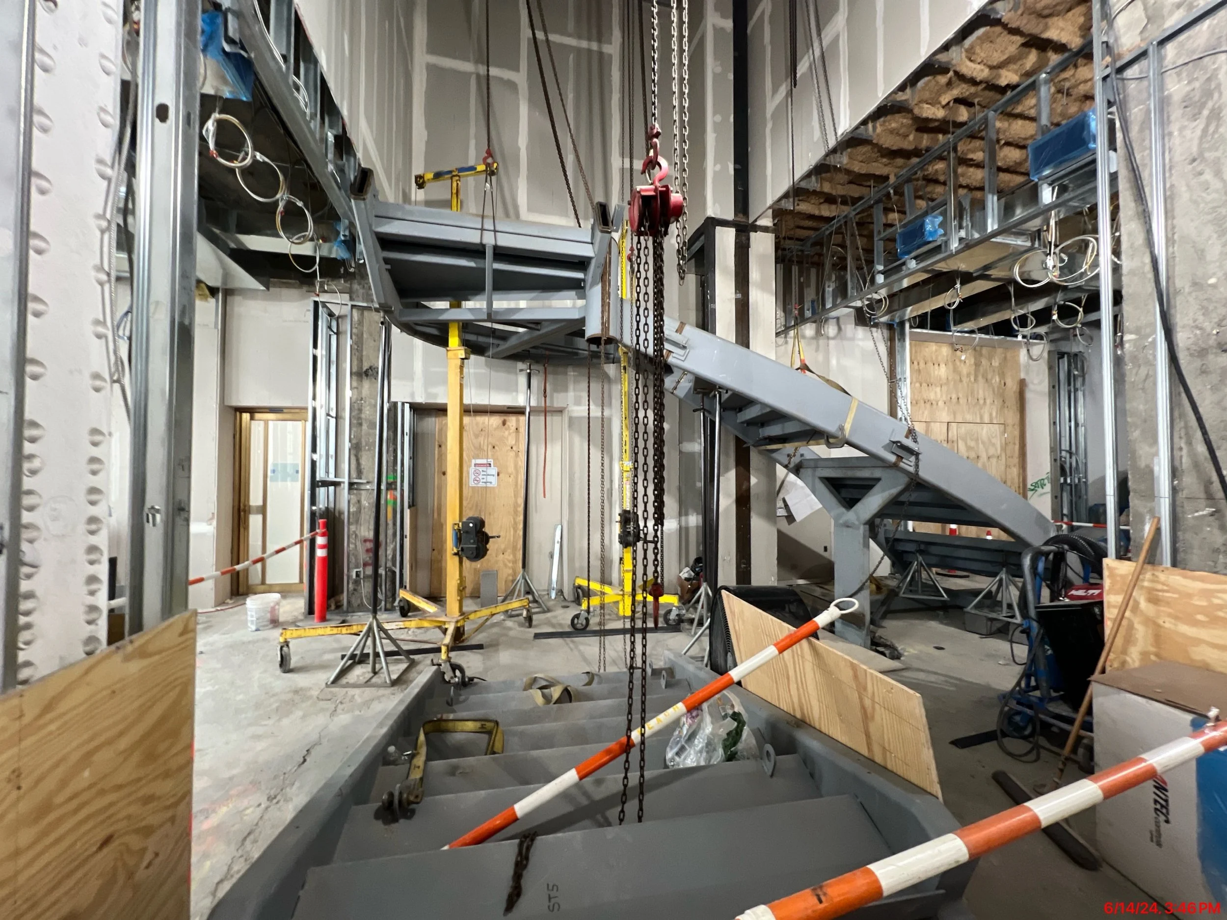 Structural fabrication began at the transition from winter to spring 2024 followed by installation in the summer. This was a coordinated effort with the general contracting team at Schimenti which required many hands and many cranes to set in place. Once the welding was complete, and bolts tightened, we moved onto the fabrication of the custom guardrail millwork which uniquely was shaped to delicately surround the bronze handrail.